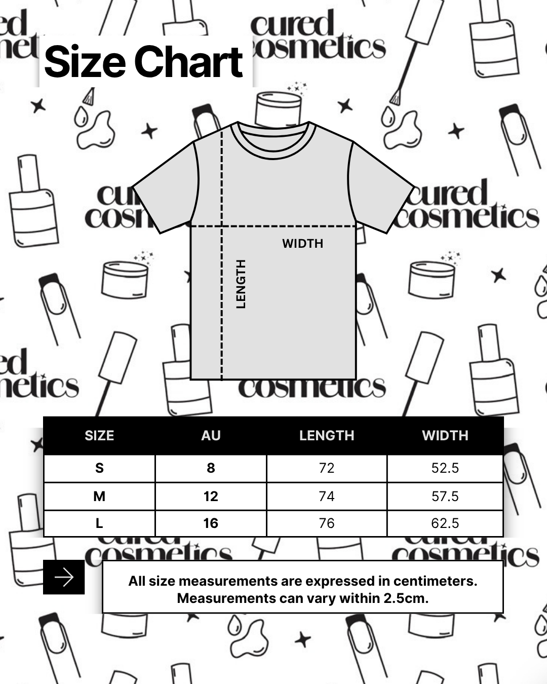 Our Madi_Cured tees are designed with an oversized fit. Unsure which size is best for you? View our sizing chart for measurements.